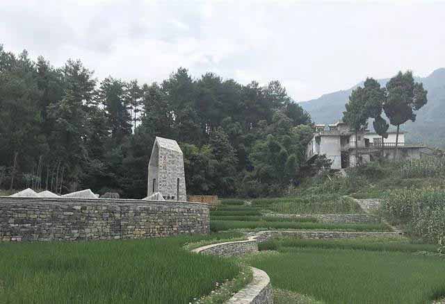 鳳凰措,位于山東日照。采用山的意向,由兩個當(dāng)?shù)厥钠鲋牡袼荏w構(gòu)成,與遠(yuǎn)處的山體相互呼應(yīng)。