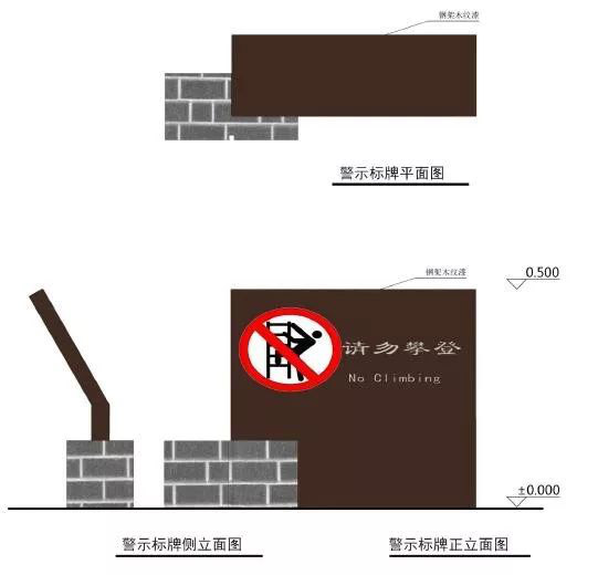 材料選擇:提示與警示標(biāo)牌基座材料的選擇組要以灰磚為主,上部主要以防腐木為主體。