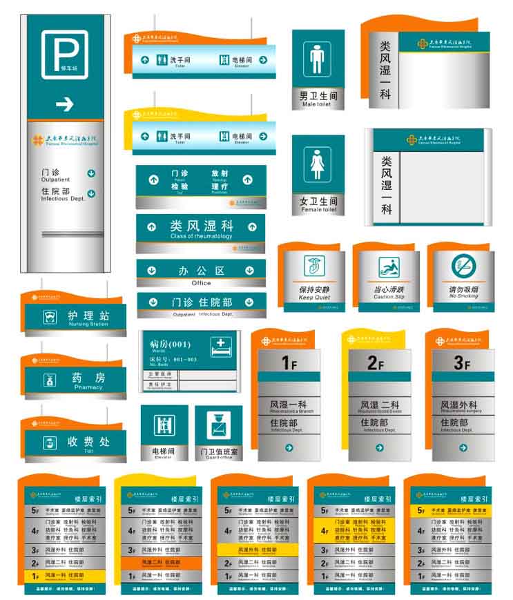 醫院引導標識系統依據適用范圍可分為:戶外標識 公共區域引導標識和室內環境標識。